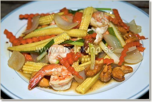 Räkor med grönsaker och cashewnötter.